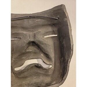 Vintage Oaxaca Mexico Black Pottery Mask Folk Art Tragedy Face Tribal Aztec Mayan Wall Hanging