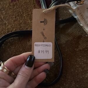 This unique purse has leather straps, extremely lightweight, and has a Velcro closure. Definitely a conversation piece.