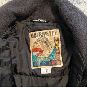 This is an Obermeyer Juniors ski or winter jacket. Three pockets on the from and one one the back. Excellent used condition! No flaws. Zipper and snaps work perfectly. Comes from a smoke free and pet free home.