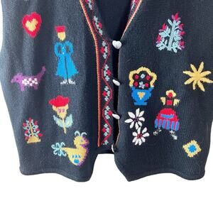 Vintage Obermeyer Folk Art Wool Knit Meg Sweater Vest Women's XL