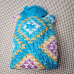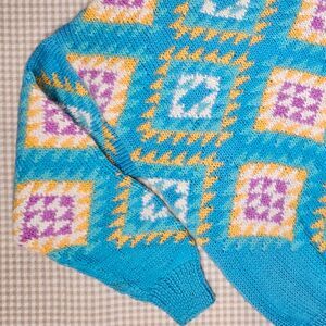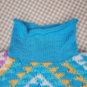 Vintage Obermeyer Jaynee Granny Square Geometric Rolled Turtleneck Wool Sweater