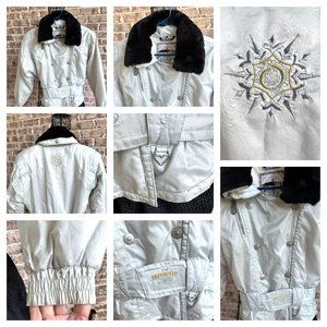 Vintage Obermeyer Ladies Ski Suit Sz 10 Iridescent 1 Piece Stirrups Embr…