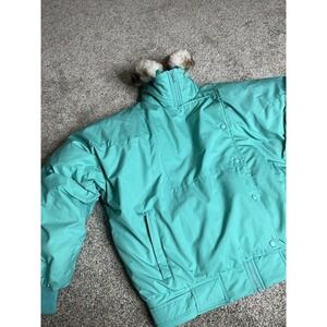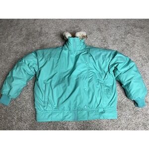 Vintage Obermeyer Ski Jacket Women's Size 16 Teal Green PUFFER Zip Button