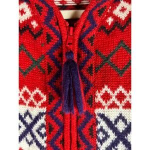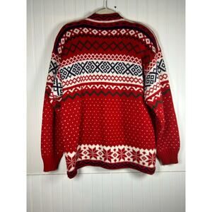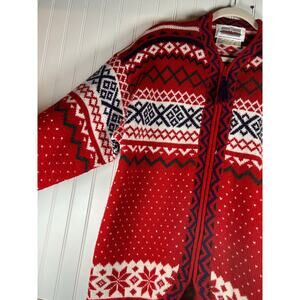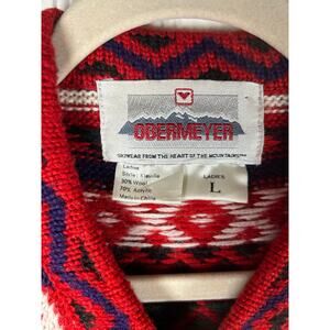 Vintage Obermeyer Women's size L Klaudia Sweater Red navy Fair Isle Full Zipper