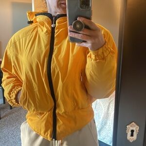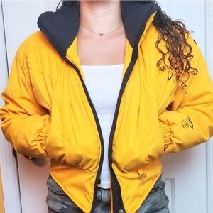 This super cute vintage Obermeyer Yellow down ski jacket is in great condition. The attention to detail in this jacket is amazing from the personalized heart zipper, to the two inside pockets and to the elastic waist band, this jacket is to die for. Truly one of a kind. Also this jacket is machine washable. Hooded please see photo for small flaw that can be eas fixed with some 🪡