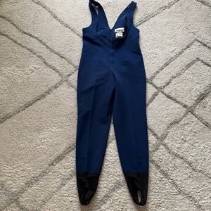 Vintage Obermeyer snow bib snowsuit overall Blue Wool Ski stirrups 12
