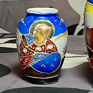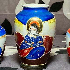 Vintage Occupied Japan Satsuma Moirage Porcelain Bone China Mini Vases Set Of 3