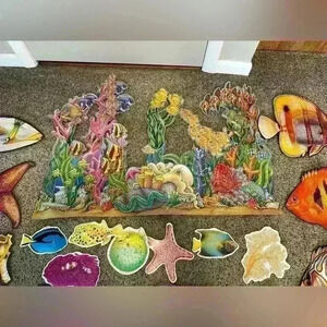 This is a lot of 29 ocean creatures including a cardboard cut out of the coral. This is Preowned and they do show signs of wear and good condition. These are great for a school classroom, VBS or Sunday school class