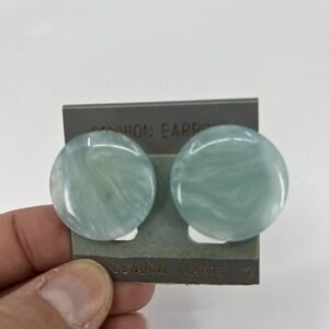 Vintage Ocean Blue Lucite Round Large Clip-on Earrings MOD Button 1"