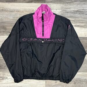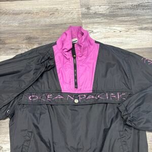 Vintage Ocean Pacific Black Purple Men L Spellout OP Anorak Windbreaker Jacket