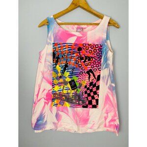 Vintage Ocean Pacific Neon Tie Dye Tank Top, Size Small, 1980s Surfer Tank, NOS