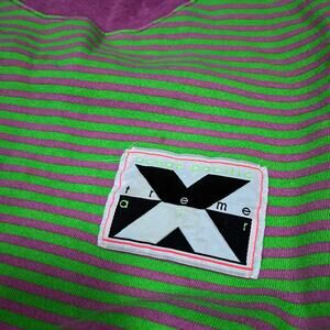 Please note some small stain spots. Awesome vintage piece with chest patch that reads Extreme Air in cool pink and green color way. Tagged medium. See pictures for details and measurements. Orders ship out on Monday, Wednesday, and Friday.