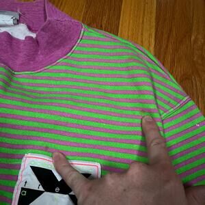 Vintage Ocean Pacific OP Green Pink Striped Sweater Medium 80s 90s Extreme Air
