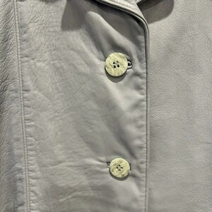 Excellent pre owned vintage condition. One minor flaw in the leather that is covered by the button placket. Pictured but it is so minor it is barely detectable. No size, measures as a modern medium. Super soft leather. Pockets.