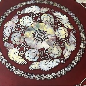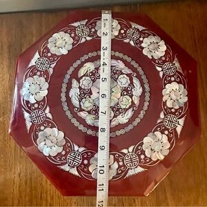 Vintage Octagon Wooden Lacquered Box with Mother of Pearl Inlays 11 pc. 11.5 x 2