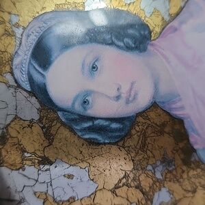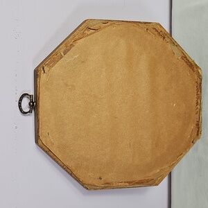Elegant octagonal frame with a vintage portrait. Features a gold and brown design. The backing is a little frazzled