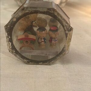 Vintage Charming octagonal trinket box. Features two small figurines inside. Unique and decorative. Few flaws
