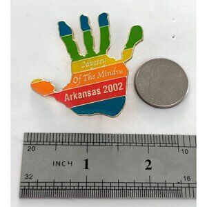 Vintage Odyssey of the Mind Arkansas Right Hand 2002 Lapel Pin. Quarter and ruler to show size only. Please check out my other pins for combined shipping. Thank you