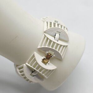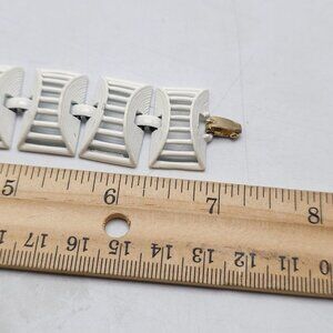 Vintage Off White Enamel Art Deco Style Bracelet Geometric Panel 7 in
