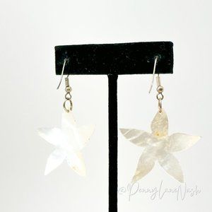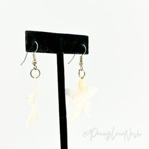 Add a touch of vintage elegance to your outfit with these stunning dangle earrings. These earrings are made with high-quality materials and feature a delicate floral design with a star accent. The off-white color of the flowers gives these earrings a versatile quality, making them suitable for both casual and formal outfits. Whether you're dressing up for a romantic dinner or adding a touch of elegance to your everyday attire, these earrings are a perfect choice.