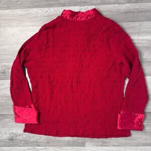 Vintage Office Siren Red Blouse Satin Cuffs and Collar Plus Size