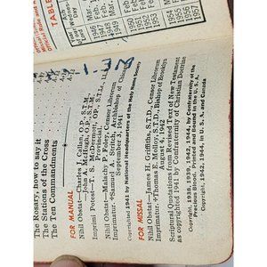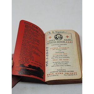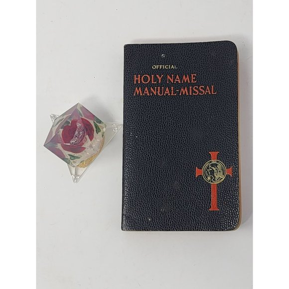Vintage Official Holy Name Manuel Missal And Bircraft Lucite Acrylic Rose in good used condition some wear due to age and handling. Bircraft Rose made in Huntington India. There may be a cross missing on the rose piece. There was some personal information that I did sharpie out.