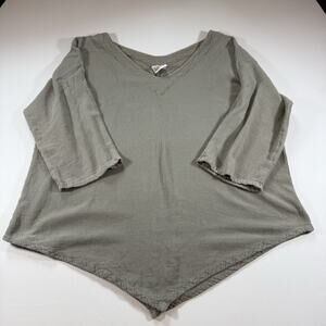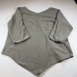 Vintage Oh My Gauze V-neck Linen Gauzy Boho Lagen Look Blouse Top Gray Wms 2
