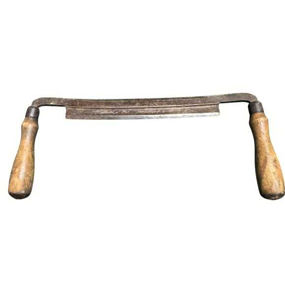 This vintage draw knife, crafted by Ohio Tool Co., features sturdy wooden handles and a 9-inch steel blade. A timeless tool for woodworking enthusiasts.