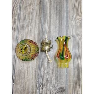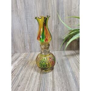 Vintage Oil Lamp, Miniature Rainbow Glass 8" Kerosene Lantern, Made in Hong Kong