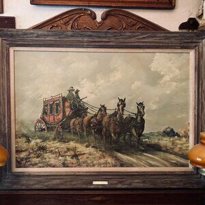 Vintage Oil Painting American Texas Artist Cecil Young Stagecoach Old Wild West