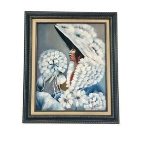 Vintage Oil Painting Black Lady with Dandelion Signed Henri