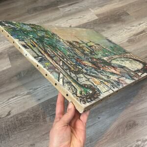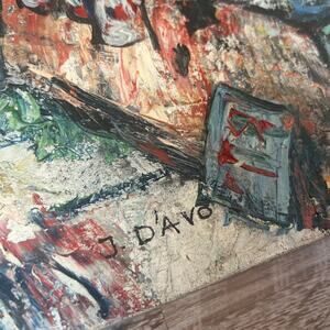 Original oil on canvas painting signed “J. D’Avo.” Heavily textured with expressive palette knife strokes and a vibrant depiction of a French riverside street scene. Likely mid-20th century based on canvas construction and paint style. Canvas is 25” x 19” and wired for hanging. No frame included.