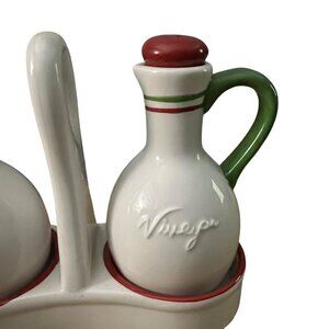Vintage Oil and Vinegar Ceramic Cruet Set with Caddy Christmas White Red Green