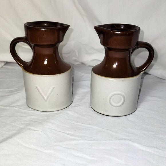 Vintage Oil and Vinegar Dining Pair/Salad Dressing Ceramic Bottles 1970s