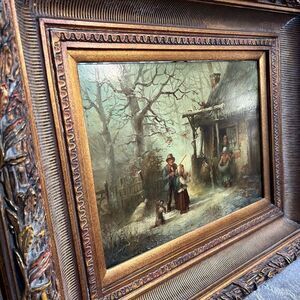 Vintage Oil Painting Panel with Large Wood & Gold Ornate Frame Little Musician