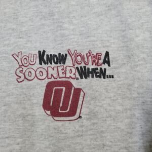Show your Sooners pride with a humorous twist in this vintage Oklahoma Sooners sweatshirt, designed in a boxy large fit, perfect for fans of retro college apparel.