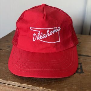Vintage Oklahoma Trucker Hat Red Mesh Snapback Embroidered State Outline New USA