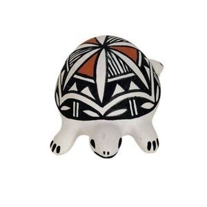 Vintage Native American Acoma NM Pueblo pottery turtle figurine signed CS