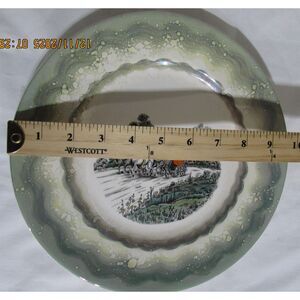 Vintage Old Castle made in England winter scene plate green horse and carriage