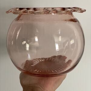 Vintage 1930's Anchor Hocking Old Colony Open Lace pink depression glass jar/ bowl/ cookie jar base