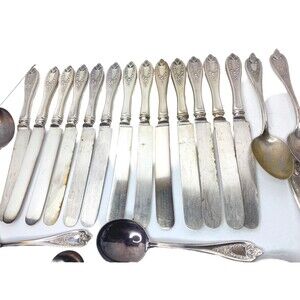 This vintage Old Colony flatware set by 1847 Rogers is a rare find for collectors of antique silverware. With a Victorian style and pattern, this set was introduced in 1911 and discontinued in 1973. The set includes pieces for a complete table setting and is made of high-quality silverplate. The brand, Rogers, is well-known for its craftsmanship and attention to detail. This set would make a beautiful addition to any collection or a stunning display on a dining table.