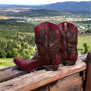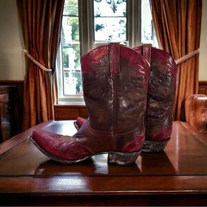 Vintage Old Gringo handmade in Mexico gorgeous hand stitching SZ9.5 🔥VINTAGE OLD GRINGO🔥handmade in Mexico ❤️‍🔥gorgeous hand stitching❤️‍🔥 SZ9.5 brown and red leather. All handmade, hand stichting, from Mexico. Old Gringo brand makes boots like no other company. I love their designs. How the tip of the boot goes up a bit. It’s just a signature feature that I love about them. Super comfy. Only selling them because I have too many cowboy boots. Lol. RED AND BROWN They are gorgeous ❤️🤎
