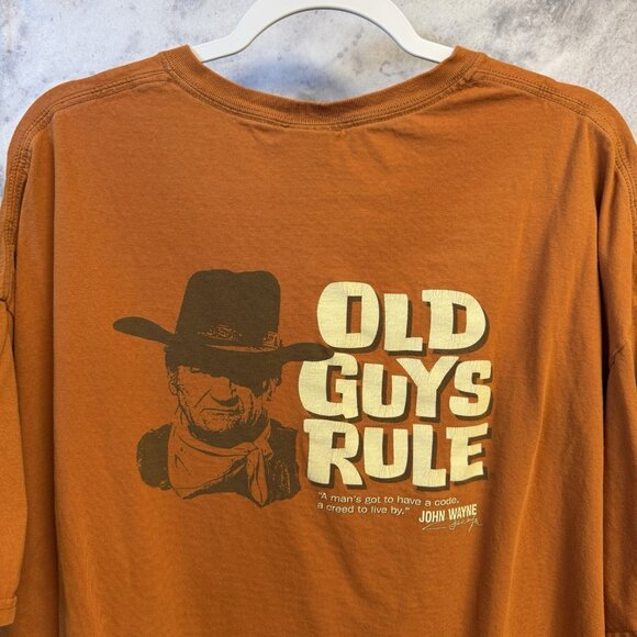 Vintage Old Guys Rule T Shirt Mens 3XL 26x29 Orange John Wayne Western