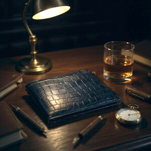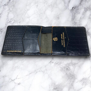 Vintage Old King Cole Crocodile Embossed Black Calf Leather Bifold Men's Wallet