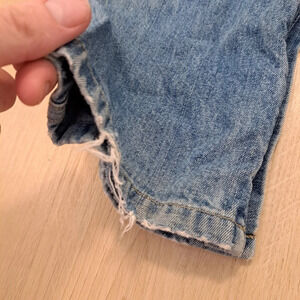 There is some discoloration on and around one of the back booty pockets. There is also some distressing on the bottom of the Overalls.