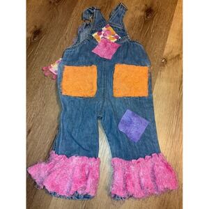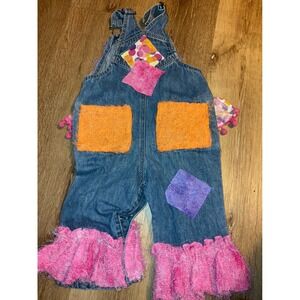 Vintage Old Navy Baby Denim Overalls Ruffle Bottom Patchwork Girl 18-24 M