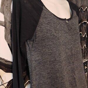 Vintage Old Navy Baseball Tee size Medium Dark Grey RAGLAN Black 3/4 sleeve
