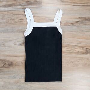 Old Navy black ribbed, long sleeved sweater and tanktop with cream accent lining