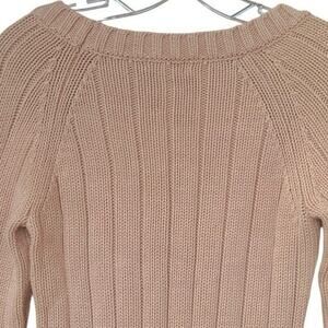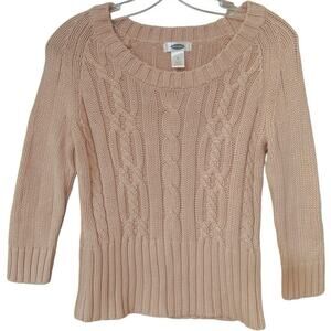 Vintage Old Navy Cable Knit Sweater 100% Cotton 3/4 Sleeves Size Medium Tan