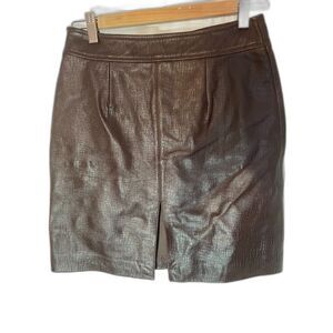 Vintage Old Navy Collection Genuine Leather Skirt Brown Croc Embossed Y2K Med